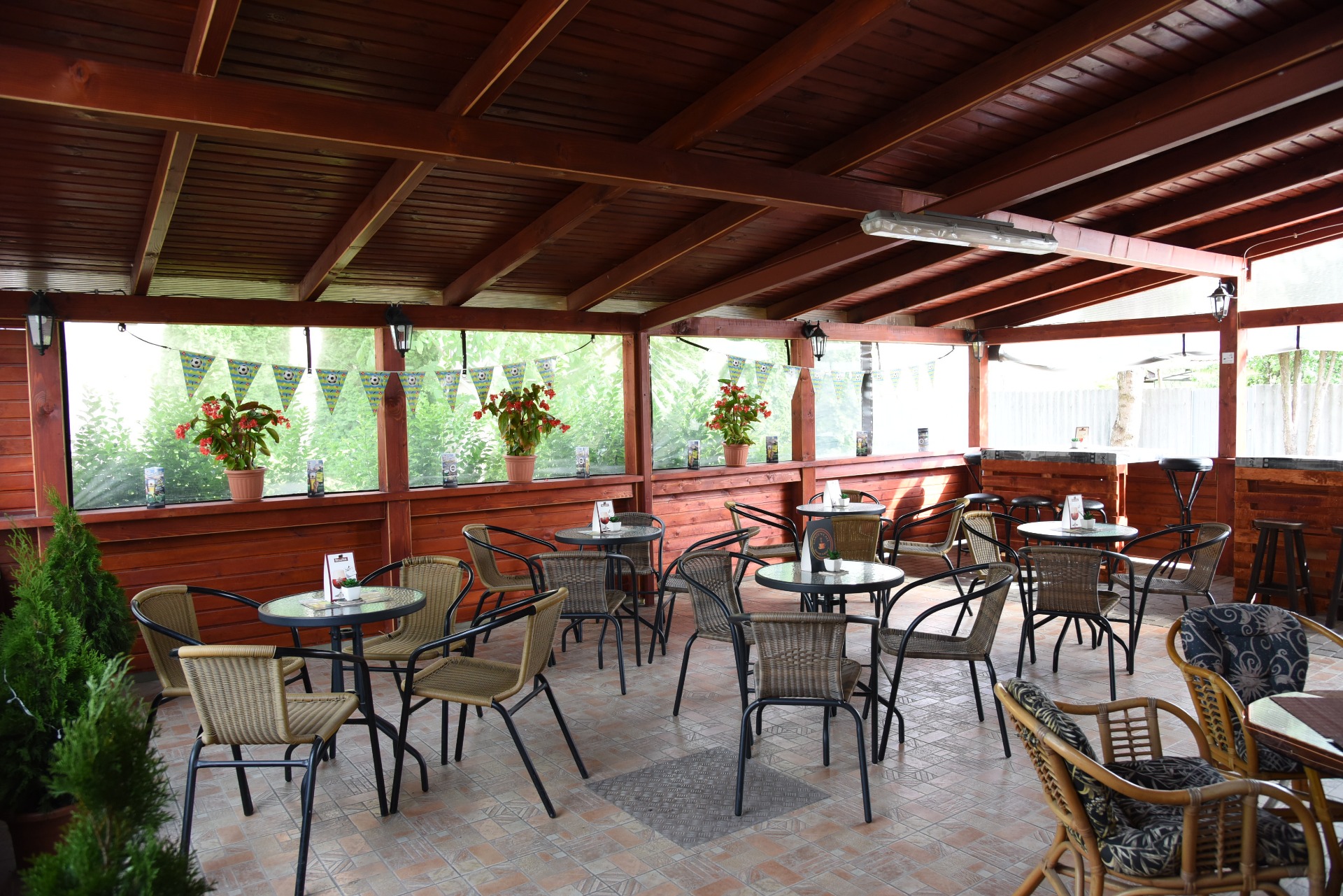 Nyáron kerthelyiségünkben fedett terasz gondoskodik azokról, akik a jó levegőn szeretnek helyet foglalni, Télen zárt és meghitt hangulat. Zártkörű rendezvények, családi rendezvények megtartására is alkalmas.